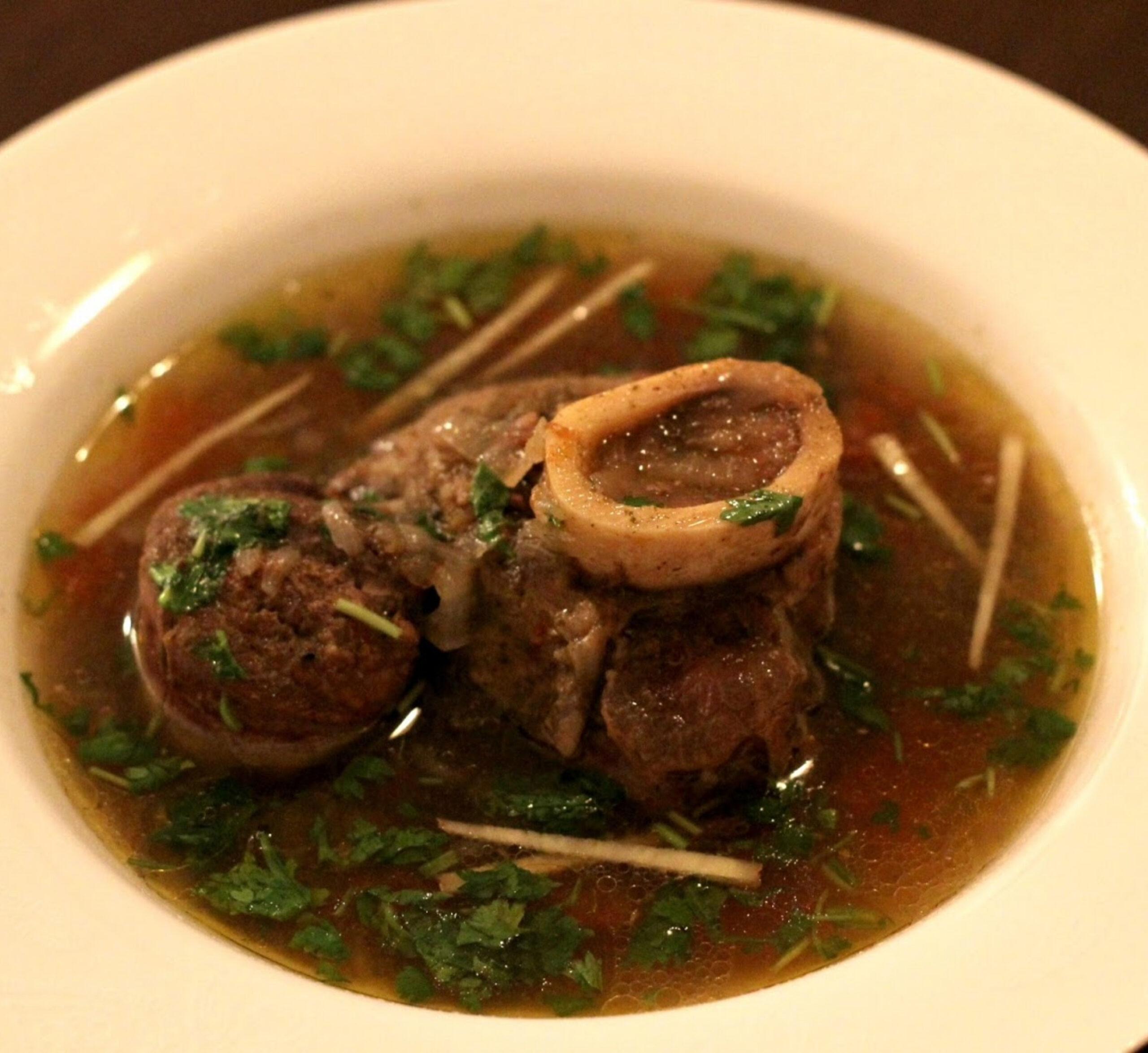 Caldo de huesos al estilo persa, cocido lentamente con hierbas.